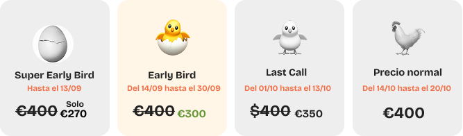 Precio normal 400 € - asegúrate tu ventaja según el momento de reserva.